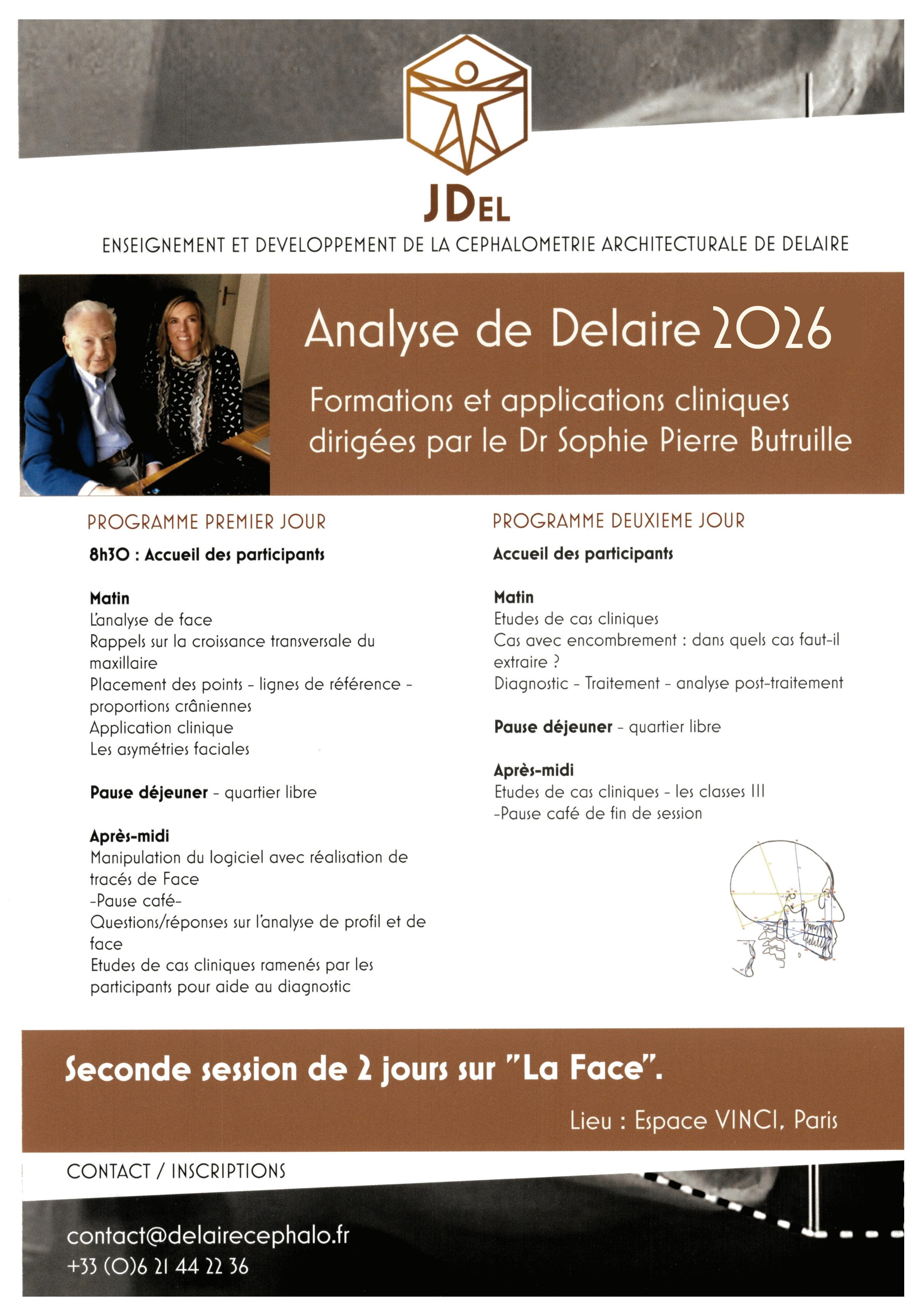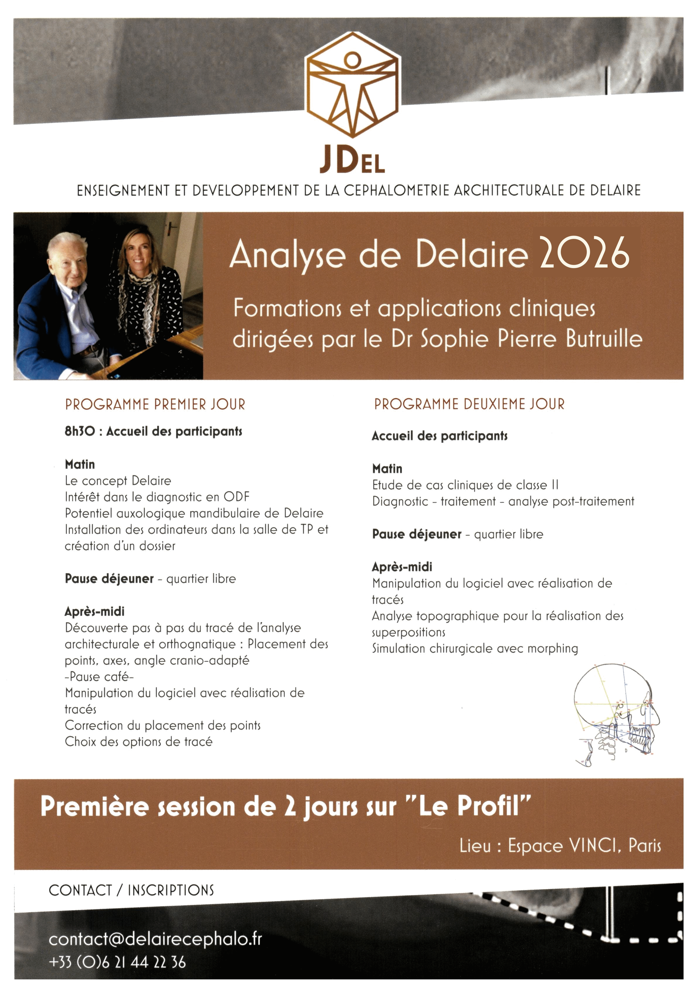 Only "architectural", "Orthognathic", "Topographic", "dental", "cutaneous profile", "soft tissues velophyngo-lingual", "Cranio-mandibular" (and cranio-facial) analyses can meet the needs of clinicians, this is what many researchers and clinicians have understood, who have been working hard to develop these methods since the beginning of orthodontic cephalometry. The personal research of Professor Jean Delaire, concerning the development of a new cephalometric analysis began as soon as he entered professional life (1953). They have successively covered: - anatomy and physiology of cranio-facial skeleton development in normal and pathological subjects, particularly in dento-facial dysmorphosis and numerous malformative syndromes. - the critical study of all cephalometric analyses proposed since 1931 (first article of h.broadbent) with systematic research of their "common data" (constants): angular values, parallelisms, alignments, proportions of their lines and reference segments. - the work of other authors working in the same direction (development of an analysis not based on statistical averages). - Professor Delaire himself, in 1971, developed a cephalometric analysis to highlight and study specifically the development of the various facial territories. This assimilation to a (suspended) construction whose characteristics depend on: - its building site (the anterior base of the skull), - the orientation and length of its vertical "pillars", - the orientation and dimensions of its maxillary and mandibular constituents, - the orientation and arrangement of the alveolar-dental elements. The interest of assimilating the face to a "construction" and the possibility (thanks to this analysis) of systematically studying all its "architectural factors" makes it possible to understand: a) the individuality of each side according to the hereditary and functional anatomical peculiarities of each; b) the deforming effects of oro-facial dysfunction (and provide for those of orthodontic or surgical treatments). c) The consideration of the whole skeleton of the cephalic end and referred to standards of alignments and harmoniously balanced proportions" therefore of the cranial "box" (vault + base) and the upper cervical spine. d) References to universal standards, "specific" laws specific to living matter (to living beings) that facilitate the understanding of the architectural development of the cephalic skeleton